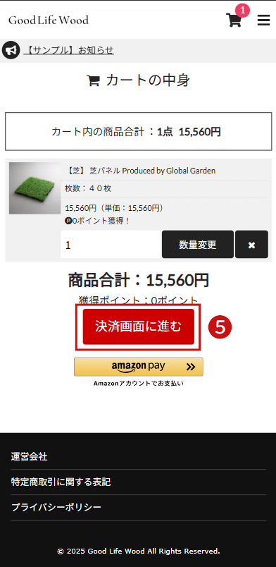 ⑤選択商品をご確認の上、決済画面にお進みください。