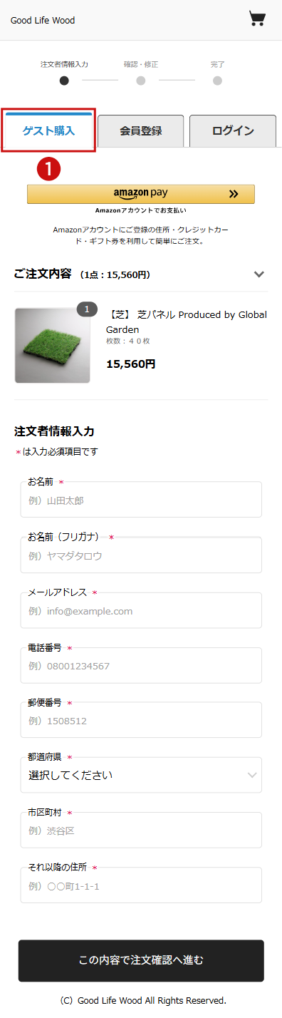 ①ゲスト(非会員)のままご購入いただくことも可能ですが、ご注文の都度ご入力いただく必要がございます。また、会員特典の割引サービスやポイント付与、クーポンなどの会員特典などがご利用いただけません。
